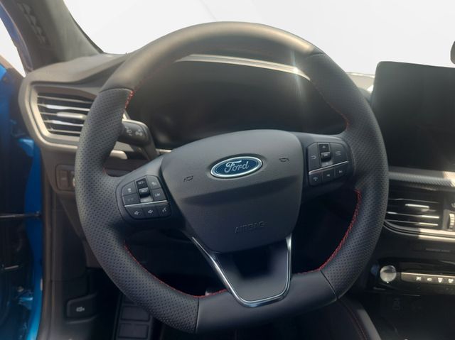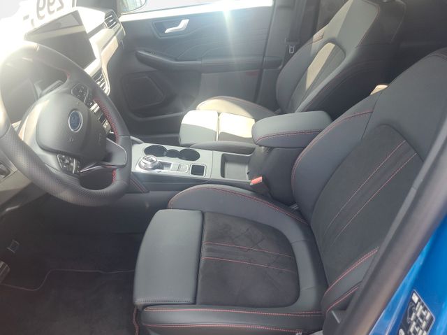 Adaptive Geschwindigkeits-Regelanlage mit Stop&Go-Funktion, Akustischer Fußgängerschutz (Außensound, AVAS), Ambiente-Beleuchtung vorn (LED), Antischlupfregelung (ASR), Audio-Navigationssystem Ford mit AppLink, Außenspiegel elektr. anklappbar, Außenspiegel elektr. verstell- und heizbar, Body-Styling-Paket, Bordcomputer, Bremssättel Rot lackiert, Dachhimmel Stoff, dunkel, Dachreling schwarz, Dachspoiler (große Ausführung) Wagenfarbe, Doppelendrohr Auspuffanlage, Eco-Anzeige für verbrauchsoptimiertes Fahren (EcoCoach), Einstiegschienen mit Modell-Schriftzug, Elektromotor 97 kW (Hybridantrieb), Ergonomiesitze vorn, Fahrassistenz-System: aktiver Park-Assistent Plus, Ein- und Auspark-Funktion und teilautomatisierter Fahrzeugführung, Fahrassistenz-System: Ausweich-Assistent (Evasive Steer Assistance, ESA), Fahrassistenz-System: Fahrspur-Pilot, Fahrassistenz-System: Falschfahrer-Warnfunktion, Fahrassistenz-System: Notbrems-Assistent, Fahrassistenz-System: Post-Collision-System, Fahrassistenz-System: Pre-Collision-System, Fahrassistenz-System: Spurhalteassistent, Fahrassistenz-System: Totwinkel-Assistent, Cross Traffic Alert und Notbremsfunktion, Fahrassistenz-System: Verkehrsschildassistent, Fensterheber elektrisch vorn + hinten mit Komfortschließung, FordPass Connect inkl. eCall, Fußmatten ST-Design, Gepäckraumabdeckung / Rollo, Getriebe Automatik - ECVT, Heckleuchten LED, Induktionsladeschale für mobile Endgeräte, Innenspiegel mit Abblendautomatik, Intelligent Protection System (IPS), Intelligenter Geschwindigkeits-Begrenzer, Isofix-Aufnahmen für Kindersitz, Karosserie: 5-türig, Kindersicherung elektrisch, Klimaautomatik 2-Zonen, Kofferraumdeckel / Heckklappe elektr. betätigt (Öffnung, sensorgesteuert), Kombiinstrument Digitalanzeige 12,3 Zoll, Kopfstützen vorn 4-fach verstellbar, Lackierung Desert Island Blue metallic, Ladekabel mit Schukostecker, Lendenwirbelstütze Sitz vorn links, Lendenwirbelstütze Sitz vorn rechts, Lenkrad (Sport/Leder, ST), Lenksäule (Lenkrad) höhen-/längsverstellbar, LM-Felgen, Mittelarmlehne hinten, Modellpflege, Motor 2,5 Ltr. - 112 kW (System: 178 kW) Hybrid, My Key (2. Fahrzeugschlüssel programmierbar), Off-Road Multi-Meter-Anzeigen inkl. Neigungswinkel, Kompass, Parkbremse elektrisch mit Auto-Hold-Funktion, Parkpilotsystem vorn und hinten, Pedale Aluminium, Radstand 2710 mm, Reifen-Reparaturkit, Reifendruck-Kontrollsystem, Rückfahrkamera, Rücksitzlehne geteilt, Rücksitzlehne klappbar, Schadstoffarm nach Abgasnorm Euro 6d, Schalt-/Wählhebelgriff Aluminium, Scheibenrahmen schwarz, Scheinwerfer mit Ausschaltverzögerung, Scheinwerfer-Assistent mit Tag-/Nachtsensor, Seitenscheiben vorn Akustikglas, Sitzbezug / Polsterung: Kunstleder / Stoff Wildleder Optik, Sitzheizung vorn, Sonnenblende links mit Spiegel (beleuchtet), Sonnenblende rechts mit Spiegel (beleuchtet), Spezialausführung 2, Sport-Fahrwerk, Türkantenschutz / Schutzprofil vorn und hinten (Door Edge Protector), Verglasung hinten abgedunkelt (Privacy Glass)