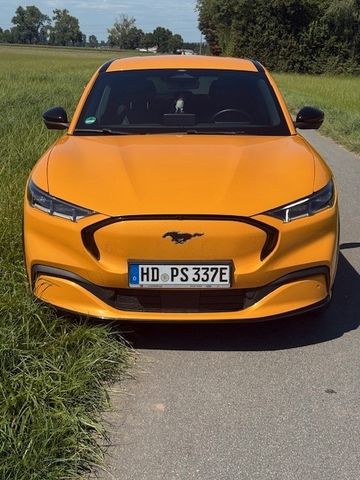 Ablagetasche an Vordersitzlehnen, Airbag Beifahrerseite abschaltbar, Akustischer Fußgängerschutz (Außensound, AVAS), Ambiente-Beleuchtung (Multicolor-LED), Anhänger-Stabilisierungs-Programm (TSA), Anhängerkupplung Vorbereitung, Audio-Navigationssystem Ford SD (mit Ford SYNC 4 und Touchscreen-Farbdisplay), Ausstattungs-Paket: Ford Co-Pilot 360, Außenspiegel elektr. anklappbar, Außenspiegel elektr. verstell- und heizbar, Bremssättel Rot lackiert, Dachhimmel Stoff, dunkel, Eco-Anzeige für verbrauchsoptimiertes Fahren (EcoCoach), Einstiegsleisten vorn (Edelstahl-Design), Elektr. Bremskraftverteilung (EBD), Elektromotor 258 kW (cont. 124 kW, Dual-Elektromotor), Fahrassistenz-System: aktiver Park-Assistent Plus, Ein- und Auspark-Funktion und teilautomatisierter Fahrzeugführung, Fahrassistenz-System: Auffahrwarnsystem, Fahrassistenz-System: Fernlichtassistent (Scheinwerfer mit Abblendautomatik), Fahrassistenz-System: Notbrems-Assistent, Fahrassistenz-System: Post-Collision-System, Fensterheber elektrisch vorn + hinten mit Komfortschließung, FordPass Connect inkl. eCall, Fußmatten Velours, Heckleuchten LED, Heckspoiler, HV-Batterie 99 kWh brutto / 91 netto, Induktionsladeschale für mobile Endgeräte, Innenausstattung: Carbon-Dekor, Innenraumfilter: Staub- und Pollenfilter, Innenspiegel mit Abblendautomatik, Intelligent Protection System (IPS), Isofix-Aufnahmen für Kindersitz, Karosserie: 5-türig, Kindersicherung elektrisch, Klimaautomatik 2-Zonen, Kombiinstrument Digitalanzeige 10,2 Zoll, Komfortsitze vorn, Kopfstützen hinten mechan. verstellbar (3 Stück), Kopfstützen vorn 4-fach verstellbar, Lackierung Cyber Orange, Ladekabel mit Typ 2-Stecker (Mode 3), Lenkrad (Kunstleder), Lenkrad heizbar, Leseleuchten im Fond, LM-Felgen, Matrix-LED-Scheinwerfer, Mittelarmlehne hinten, My Key (2. Fahrzeugschlüssel programmierbar), Parkbremse elektrisch mit Auto-Hold-Funktion, Parkpilotsystem vorn und hinten, Pedale Aluminium, Radstand 2984 mm, Reifen-Reparaturkit, Reifendruck-Kontrollsystem, Rücksitzlehne geteilt/klappbar (60:40), Sitzbezug / Polsterung: Kunstleder perforiert mit Ziernähte, Sitze vorn elektr. verstellbar (8-fach, mit Memory), Sitzheizung vorn, Sonnenblende links mit Spiegel (beleuchtet), Sonnenblende rechts mit Spiegel (beleuchtet), Spezialausführung, Steckdose (12V-Anschluß) im Koffer-/Laderaum, USB-Anschluss, Verglasung hinten abgedunkelt (Privacy Glass), WLAN-Hotspot